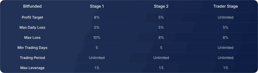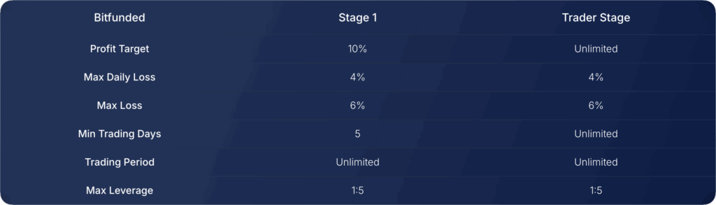 Bitfunded is a proprietary trading firm that offers simulated trading challenges. Successful traders are rewarded with demo funded accounts, allowing them to trade with Bitfunded’s demo capital and earn performance-based rewards