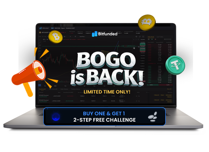 Start the Bitfunded Trading Challenge and show you can manage risk like a pro. Trade cryptos with simulated capital of up to $100,000 USDT, and hit your profit target to move forward.